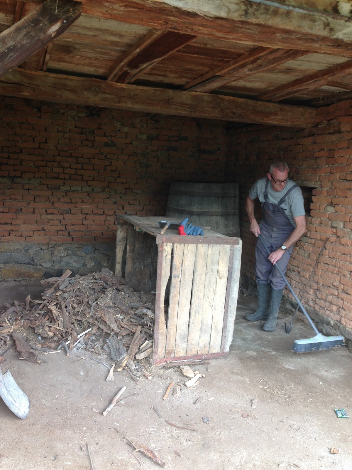 About 7pm on the first day a man turns up at our gate with a axe, we say hello he comes into the garden and starts to help us clear the nettles, after about 5 or 10 minutes he goes away and then returns with some gardening tools and once more carries on clearing our land with us. We decide then to call him “Rakeman” but after about half an hour showing us how to use the tools he goes away again and a little later he returns with a tractor and trailer to take away the garden waste, we now call him “Tractorman” he must be about 60yrs old and his name is Nicolai in fact he is the local shepherd but everyday he visits with his tractor and takes away any waste. He is such a nice guy if you met him you’d love him. We keep trying to pay him but he wont take any money from us, we separate any metals and glass for him as he weighs these in.